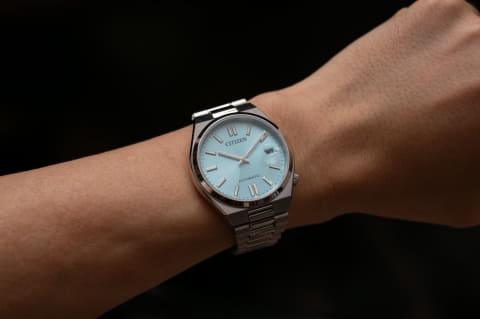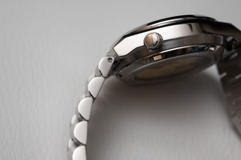 この腕時計のハイライトはケース径が37mmというサイズであることです。腕時計は長い時間をかけて徐々に大型化してきましたが、最近になって、ヴィンテージウォッチの時代のような、36mm前後をターゲットにした小ぶりなサイズ感が再評価されています。ファッション業界で“ジェンダーレス”が広がっていることも影響していそうです。例えばシチズンは2024年6月にダイバーズウォッチの37mmモデルを発売していますし、シチズンに限らずほかのブランドでも“一回り小ぶり”なサイズであることを訴求する製品が増えています。