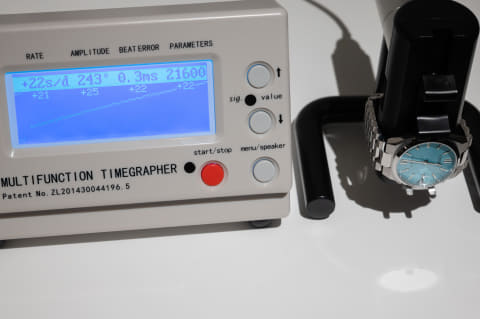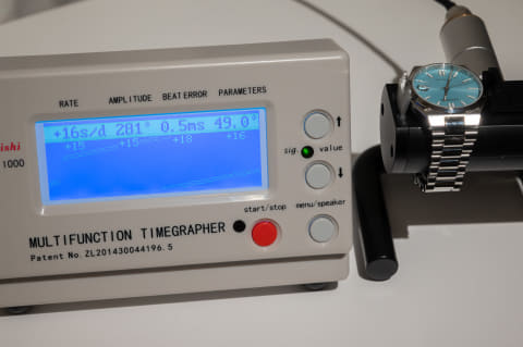 カタログスペックの精度は日差が-20秒~+40秒となっていて、実際に着用したところ、1日で+20秒ぐらいでした。1時間で1秒弱進む計算です。安価なタイムグラファーでも計測してみましたが、日差予測は平置きで+16秒、3時を下にした縦置きで+22秒でした。動きの乱れは少なく、ある程度までちゃんと調整されていることが伺えますし、5万円前後で買える機械式腕時計として標準的な内容だと思います。