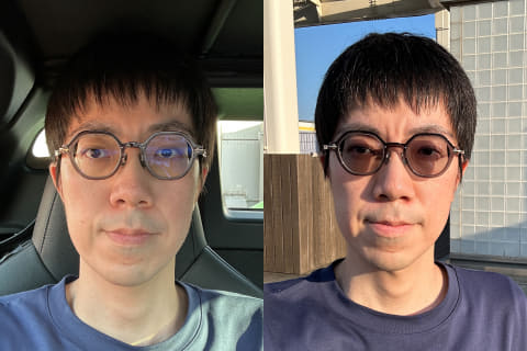 そのため基本的に「調光レンズのメガネを掛けている」ということは意識が向いていないので、室内に入るときに「早く透明に戻らないかな」と思うこともありません。鏡などに反射する自分の姿を見てようやく、調光レンズを掛けてきたことを思い出すぐらいです。
