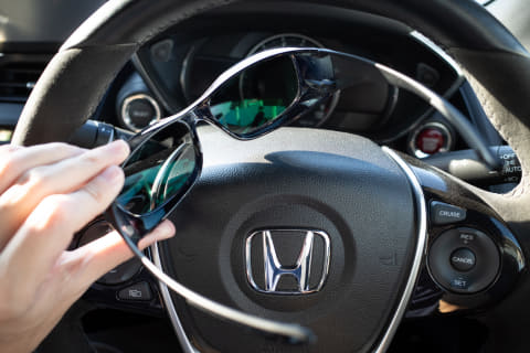 自動車を運転するときは、調光レンズがフィットしない可能性もあります。クルマのフロントガラスは多くがUVカット仕様になっており、これだと調光レンズはサングラス化しません。そのため筆者は偏光レンズ入りのオーバーサングラスをクルマに積んでいて、普通のメガネの上にこれを掛けています。偏光タイプなので視認性も高いです。
