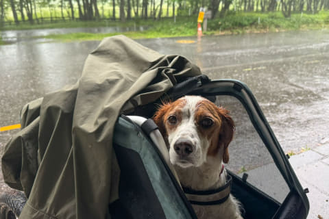 今回試したのは、iOSに標準搭載されている天気アプリとGoogle マップです。犬を連れて自転車で林道を走ることはよくあるのですが、夏場は予測不能な突然の雨に悩まされがちです。林道沿いでは通信が入らないことは珍しくなく、「この雨はあとどのくらい降るのか」という情報をスマホから得ることができないことが多いです。