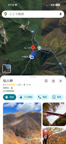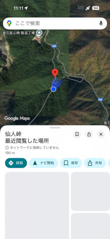 特に便利だと感じたのがGoogle マップです。Google マップも通信制限モードなどはなく、普段通りのそのままの状態で使えるのですが、Starlinkの実効通信速度はそこそこあるようで、山奥からでもお店の情報やナビゲーションが普通に使えました。これは頼もしいです。