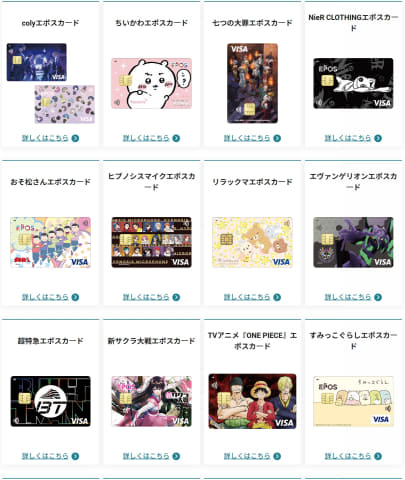 これは丸井グループ系のクレジットカード「エポスカード」で、アニメなどのキャラクターコラボカードも含めるとデザインは100種類以上もあるそうです。