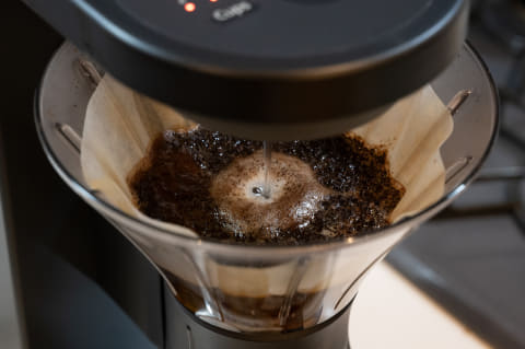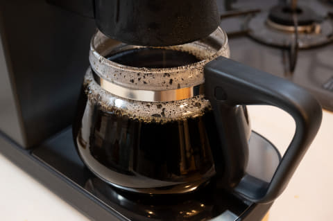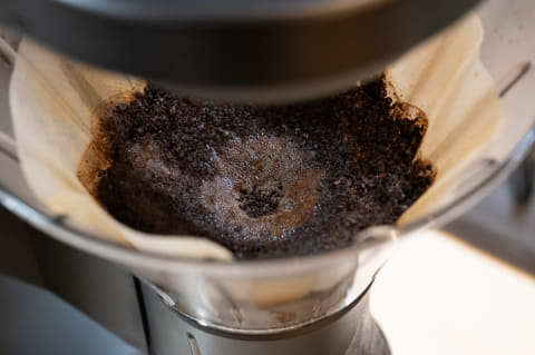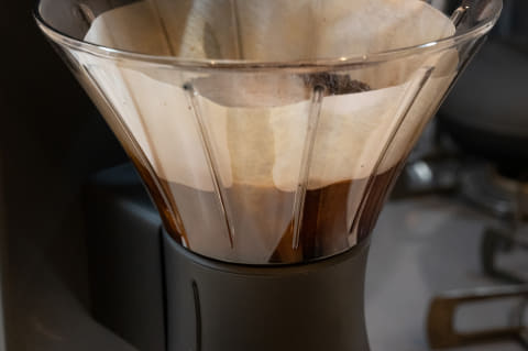 一般に透過式の弱点は、投入したお湯をぜんぶ透過させてしまうと、アクなどによる雑味も含まれてしまうことです。このためハンドドリップでは、お湯が落ちきる前にドリッパーをカップから外すようにアドバイスされますが、コーヒーメーカーの多くはお湯を最後まで落とすため、雑味を取り除いたクリアな味は期待できません。一方の浸漬式は、サイフォンなどでも同様ですが、抽出過程で出る雑味を取り除きやすいのも特徴です。