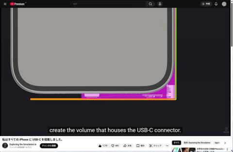 特徴的なのはポートの配置です。本製品はiPhoneの隅の丸くなった部分にUSB Type-Cポートを縦向きに配置することで、ケースの全長や幅にほとんど影響を与えることなく、ポートを実装することに成功しています。保護ケースの全長を伸ばしたり、余計な出っ張りを持たせたりといった安直な設計ではないところに、こだわりが感じられます。