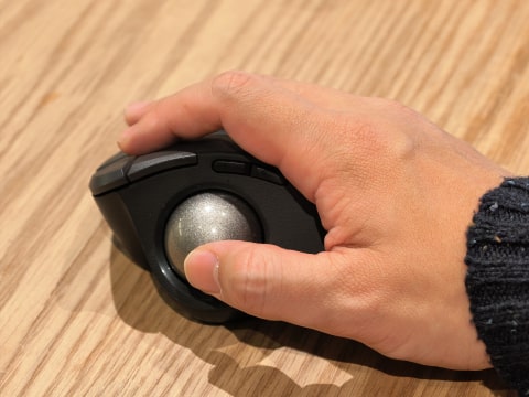 トラックボールには、親指型と人差し指・中指型の大きく2タイプがあります。好みで分かれることが多いのですが、私はスライド編集や動画編集などの細かい動作をしたいときにも、親指で力を少し入れながら細かい動作ができる、親指型がかなり気に入っています。
