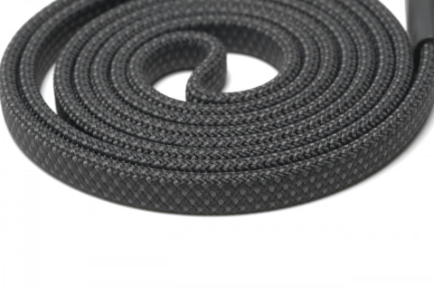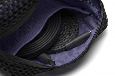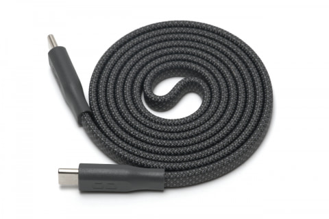 フラットスパイラルケーブルは、しっかりした編み込みナイロンの手触りが気持ちいいケーブルです。まとまった状態でもかさばらず、ポーチの隙間にもすっと収まります。