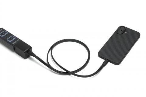外出先でノートPCやスマホを充電するとき、ケーブルの取り回しに地味なストレスを感じる場面があります。ポーチの中で絡まったり、短いケーブルだとカフェの席によっては電源まで届かなかったり。かといって1m以上のケーブルをそのままバッグに放り込むと、使わないときにかさばります。