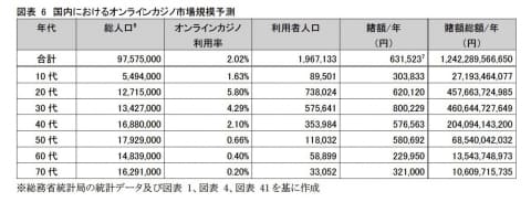 警察庁が今年1月に公開した、「オンラインカジノの実態把握のための調査研究の業務委託」と題された報告書がある。これによれば、オンラインカジノ利用率(現在も利用中)および経験率(一度は利用したことがある)の順位は、20代を先頭に30代、40代と続くが、次に10代が入ってくる。年代の総人口が少ないので、数としては多く見えないが、利用割合だけで見れば40代とほぼ変わらない数値となっている。