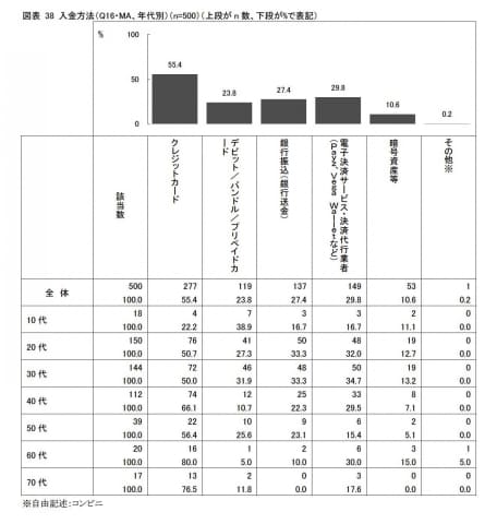 実際に入金方法の調査では、全体ではクレジットカードが大半だが、10代の最多はデビット/バンドル/プリペイドカードとなっており、基本は現金を持っていないと利用できない状況であることがわかる。