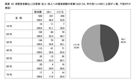 決済に関する大きな問題としては、10代では入金のための借金経験が、全年代で最多であることだ。つまり10代の違法ギャンブルに対する支払いを、誰かが肩代わりしているということであり、本人の問題ではなく、家族や友人などを巻き込んでいるということがわかる。
