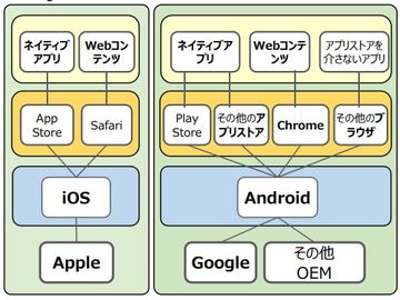 「モバイル・エコシステムに関する競争評価」中間報告の中では、アップルとGoogleという2社がもたらす寡占状況は「市場機能によって自然と解消されることが難しい」と懸念されている。