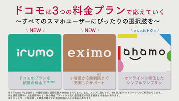 NTTドコモは7月1日から、新料金プラン「irumo」「eximo」をスタートする。