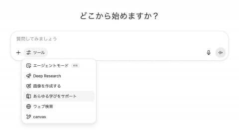 学習モードは、入力欄からモード切り替えをして、「あらゆる学びをサポート」を選ぶ。
