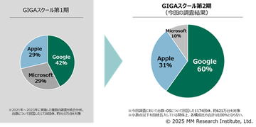 MM総研の調べでは、小中学校での教育用端末の更新整備が開始されている「GIGAスクール構想第2期」において、GoogleのChromeOSがシェアを大幅に拡大、60%を占める見通しであることがわかった。