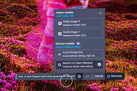 アドビはGoogleと提携し、両社のAI関連機能を最初にチェックして実装する「最恵国待遇」的な関係を得た。そのためか、Google DeepMindの開発した「Nano Banana」こと「Gemini 2.5 Flash Image」が活用されるシーンが多かった。