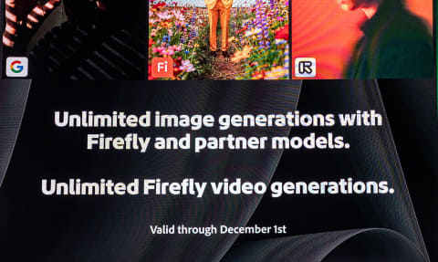 25年12月1日まで、アドビは「静止画についてはどのAIモデルでも生成料無料」とする。動画については、自社の「Firefly」を利用時のみ無料だ。