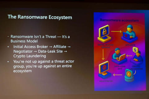 「現在のランサムウェアは(セキュリティ上の)『脅威(Threat)』ではなく、分業された『産業』です。だからこそ、ここまで経済的な被害が拡大したのです。ランサムウェアを作る人々と実際に犯罪を行なう人々は別のチームであり、『ハッキング』という言葉からイメージされるような侵入はもう行ないません。ツールと侵入可能なアカウントを買い、侵入してビジネスライクに攻撃を仕掛ける。資金交渉もその先にあります」