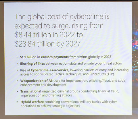 Masada氏によれば、2022年、サイバー犯罪対策には世界で約8.4兆ドルが支出されていた。これでも大変な額だが、2027年にはそれが約24兆ドルにまで拡大すると見込まれている。