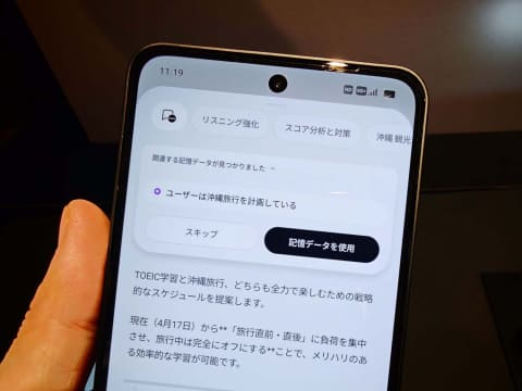 だが現状、Natural AI Phoneを使うことによるAIのコストは請求されないので、いろいろな処理を考えて「任せる」形になっても、使う人の負担は通信費と端末の購入費だけで済む。他のスマホメーカー、スマホOSプラットフォーマーも同じことを目指すだろうが、Natural AI Phoneはそれに先んじている。