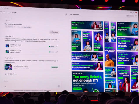 AIエージェントがブランド・ガイドラインに応じ、デザインだけでなく、コピーの適切さやコンプライアンスへの準拠なども確認する。さらに、生成コンテンツの組み立てについて、内容をAIが考えて、適切なアセットの利用や構図なども指示する。