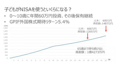 では子どもがNISAを使うと資産はどのくらいになるのか、簡単なシミュレーションをしてみます。