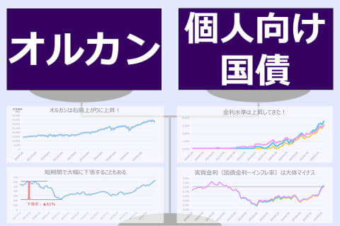個人向け国債の金利は魅力的(2026年4月時点で固定3年1.51%、固定5年1.79%、変動10年1.55%)ですが、インフレには負けてしまいます。一方のオルカンは長期的なリターンは高いものの、短期間で大幅に下落するリスクがあります。