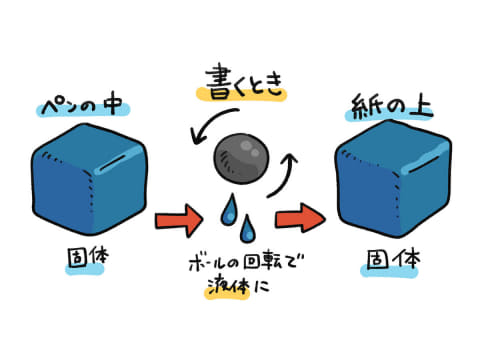 そもそも、ボールペンのインクでいうところの「水性」や「油性」とは何か。これは発色の元となる成分を溶かし込むためのベースをさしています。油をベースにしたものが油性インク、水をベースにしたものが水性インク、というわけです。
