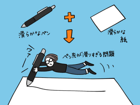 滑らかであるということは、筆記時の摩擦が少ないということ。そのため想定以上にペン先が走り、コントロールが効きにくくなります。それを無理に制御しようとすると手に余分な力が入って疲れたり、なんだかいつもより字も下手になってしまったように感じたり、という事態につながります。