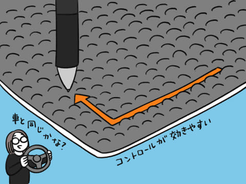 道路でもスピードを抑えて欲しいところにはハンプなどのふくらみが施されていることがありますが、理屈としてはそれと同じと聞けば、なるほど納得です。また、振動によって脳がペン先の動きを意識しやすくなるため、頭の中でイメージした文字の形と手の動きの誤差を減らす効果もあるんだとか。