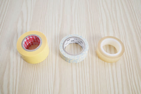 ガムテープ(クラフトテープ)等と同じ大巻サイズが養生テープの定番ですが、ワザアリテープは元の機能性はそのままに、小型化されているのがミソ。テープの幅は50mmから25mmと半分に。テープの芯になる紙管はいわゆる大巻サイズから、セロハンテープやマスキングテープのような小巻サイズになっています。