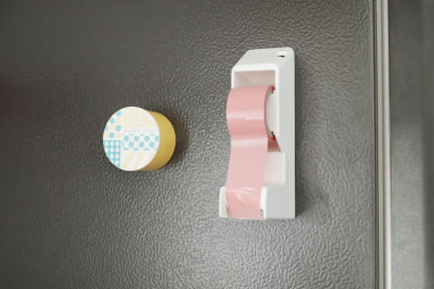 同シリーズには専用のテープホルダー(テープ付き396円)とテープカッター(1,320円)も用意されており、ワザアリテープと合わせると使い勝手がぐんと良くなります。ホルダーもカッターもマグネットで固定できるので、冷蔵庫やレンジフードなどに定位置を作ると使いたい時にサッと手に取ることができます。