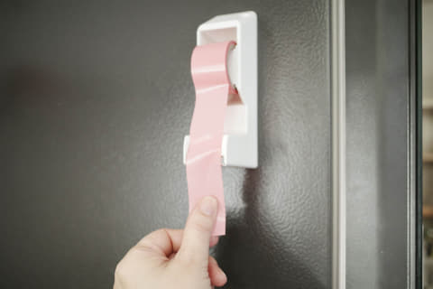 まずはちょっとだけお試ししたい、という方には初めから長さ60mmに切ってあるカットタイプ(352円)もあります。冷蔵庫などに直接貼り付けておくことができ、端の部分は糊がついていないので片手でもめくれて、こちらもなかなかの使い勝手です。持ち運んだり、引き出しのちょっとしたスキマに入れたりするのにも良いでしょう。