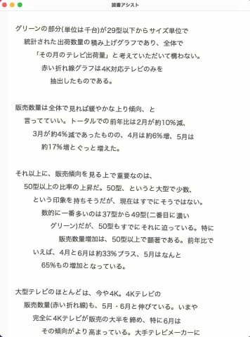 確かに、人間の生理を考えると「読書アシスト」は読みやすくなる可能性が高い技術だと思う。