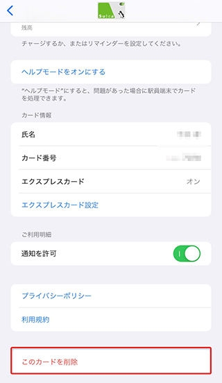 “削除”と言われると不安になりますが、元の端末のSuica情報をサーバーにいったん退避させて、同じApple IDを使う新しい端末と紐付け直す仕様となっているため、問題ありません。ヘルプの注意書きには、