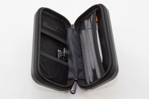 ペンだけでなく、各種ケーブルやアダプター、モバイル用のバッテリーやルーターなども一緒に収納し、電子機器類も安全に持ち運びたい、という人にはハードケースが最適です。バッグに入れても型崩れせず、中身を保護できるのがハード系のいいところです。