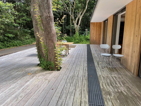 しかし「陽の家」は平屋なので、家が作る影は最小限だ。今回の取材日は夏至の日でもあったので、15時を過ぎてもウッドデッキの一部には陽光が当たっていた。また、平屋の「陽の家」の作る影より、周囲の樹高の高い木々による影の方が気になるくらいでもあった。