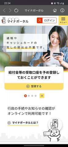 さて、ここからは実際の手続きです。マイナンバーカードそのものを入手しておくのは大前提として、今回はマイナンバーカード読み取りに対応した私物スマートフォン(Galaxy S22)から申請しました。