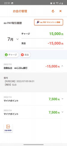 そしてもう1つ、au PAYとauじぶん銀行の銀行口座を連携させている場合、au PAY残高を適宜自動で銀行口座へ払い出す「自動払い出し」をオンにしておけば、手数料無料でマイナポイントを現金化できます(手動払い出しは有料)。「だから何なんだ」という方もおいででしょうが、友達からプレゼントをもらう時、それが図書カードか、Amazonギフト券か、現金かで、同じ15,000円分でも意味が違うはず。本当に自由にマイナポイントを使いたい方なら、au PAYを優先するのも一興かと。