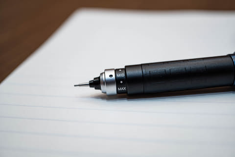 「芯が減る量は、筆圧やHB、2Bなどの芯の硬さ、そして何に書いているかの、複数の要因が重なり合って決まります。何に書いているかという点を具体的に言うと、ノートの場合はクッション性やフワリと浮いているような緩さがあるので、芯の減りは遅いです。一方でプリントやルーズリーフなどの1枚の紙を机の上に置いて書く場合はクッション性がないので減りが早くなります。そのため、状況に応じて繰り出し量をすぐに変えられるようにしているのです」(荒木さん)