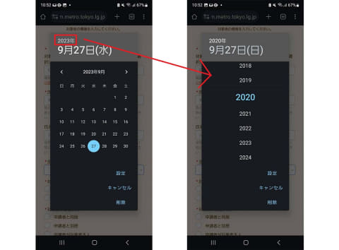 ですがこのカレンダー操作は、左上の西暦部分をタップすると西暦が一覧で表示され、すぐに生まれ年まで遡れるようになっているのです。なぜこんな隠しコマンド風になっているのか……と思いますが、別のサイトでもこうした形式のカレンダーはあり、一律で撲滅してほしいのが正直なところです。
