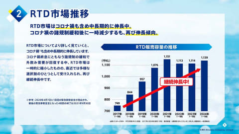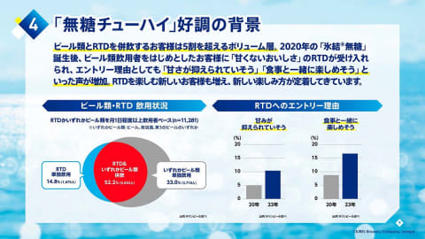 RTD市場全体においても、商品名に「無糖」を冠した商品の構成比は、氷結無糖が発売された2020年は4%なのに対し、2024年は6倍となる24%まで拡大しています。