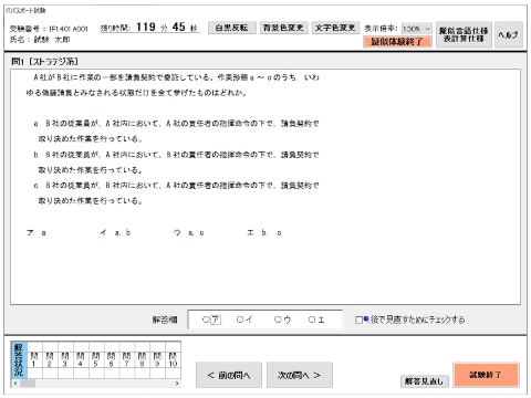 CBT(Computer Based Testing)とは、コンピュータを利用した試験方式です。試験会場で受験者1人ひとりが1台のPCを操作し、モニタに表示された問題を解答していきます。受験する際は、事前に画面の見方や操作方法などを確認しておきましょう。