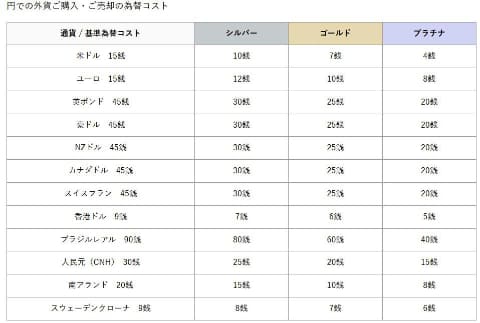 仮に外貨を保有していない場合、決済時点で日本円の預金から外貨へ両替をして現地通貨で支払う、という形になります。その場合のコストはドルとユーロは15銭など。つまり4ドル/ユーロで1円、100ドル/ユーロでも15円程度なので、どちらにせよ現金よりお得です。現金のように「旅行に行く前に現地通貨の預金を作っておき、それを使う」のが最も有効ですが、オーバーして日本円からの両替になってもまだお得です。ちなみに、この為替コストは銀行の利用状況に応じて優遇があり、最安はドル/ユーロで4銭です。