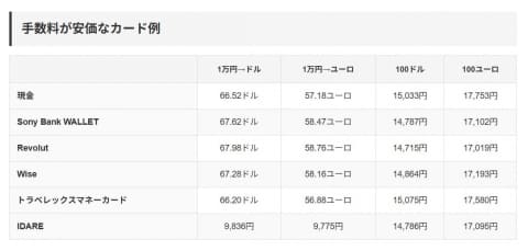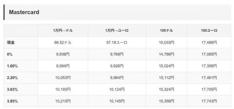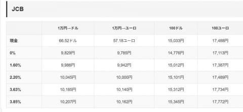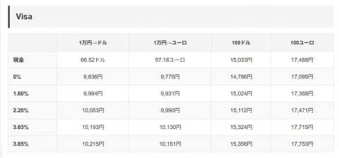 つまり、全く同じ為替レートだと、日本円を現地通貨に両替するより、 事務手数料が1.60%までならクレジットカードの方が安くなります 。