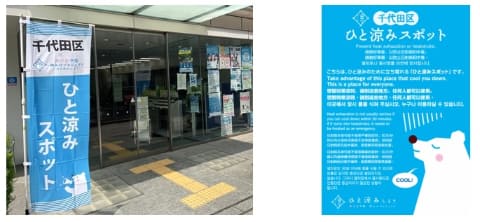 また、クーリングシェルターとは別に「ひと涼みスポット」「まちなか避暑地」といった名称で、郵便局や薬局などを涼める場所として開放している自治体もあります。いずれも入口や店頭にポスターやのぼりが掲示されており、気軽に入りやすい雰囲気が作られているようです。