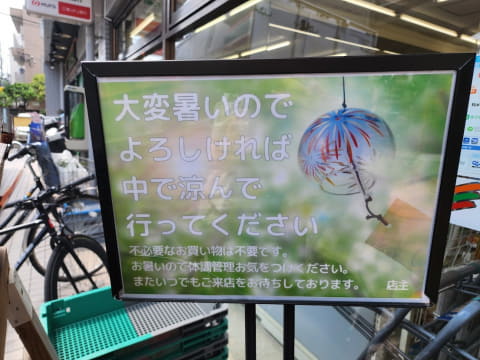 セブン-イレブンは自治体との取り組みなどはされていませんが、店舗独自で「暑いので中で涼んで行ってください」といった張り紙をしている店舗もあります。
