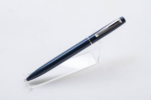 「様々な種類があるアクロボールシリーズの上位モデルです。アクロボールに使用しているアクロインキは、粘度を一般的な油性ボールペンの1/5にすることで水性に近いサラサラな書き味を実現。潤滑油のような成分が多く入っているのでダマになりにくいのも魅力です。ボディはダーク調のカラーで、あえて金パーツではなくシルバーを使っているのがポイント。ビジネスで持ちやすい、スタイリッシュなデザインに仕上げています」