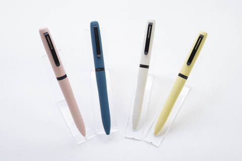 「石のような質感が心地いいセラミック調の素材を採用し、ボディに合わせて金属パーツもマットに仕上げている個性的なデザインが魅力です。内側に真鍮製の金属軸を仕込むことで、バランスのとれた重さと上品な質感を実現しました。速乾性に優れ、インク溜まりやかすれが起きにくいオリジナルの水性ゲルインクを搭載しています」