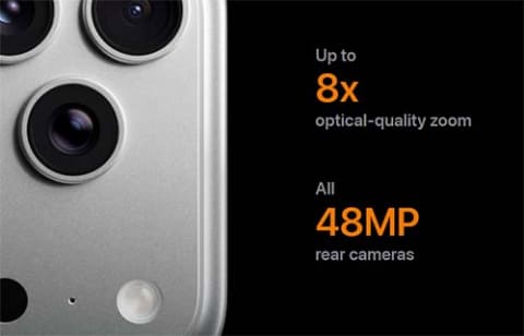 ここで、「iPhone史上最長の8倍ズーム」とアピールしており、製品ページでも「最大8倍の光学ズーム」と記載がありました。ただし、実際の48MP Fusion望遠カメラは光学4倍相当、100mm相当のズームであり、大型のセンサーかつ12MP(1,200万画素)で記録することで、2倍の望遠効果が得られることから「200mm(8倍)の焦点距離に相当する」という仕組みです。